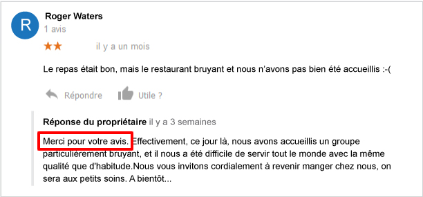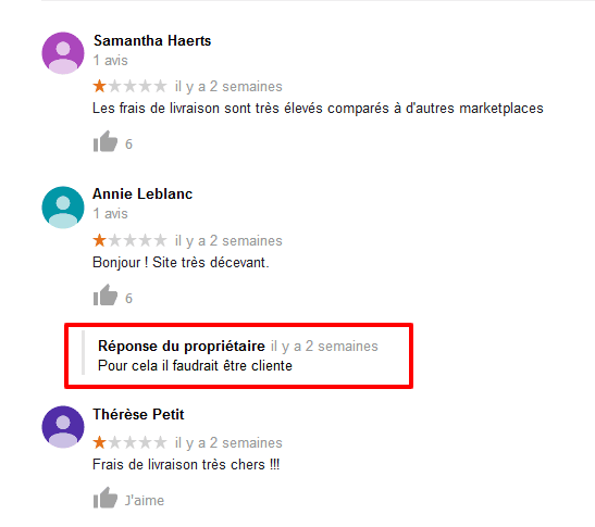 Il est toujours primordial de répondre aux avis négatifs. Il ne faut pas pour autant négliger les avis positifs, il faut montrer qu’on apporte de l’importance à l’opinion de tous les clients et que chaque avis est important à vos yeux.
