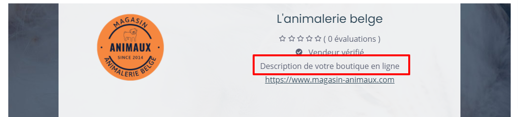 La présentation de ma boutique en ligne sera affiché dans l’encadré rouge.